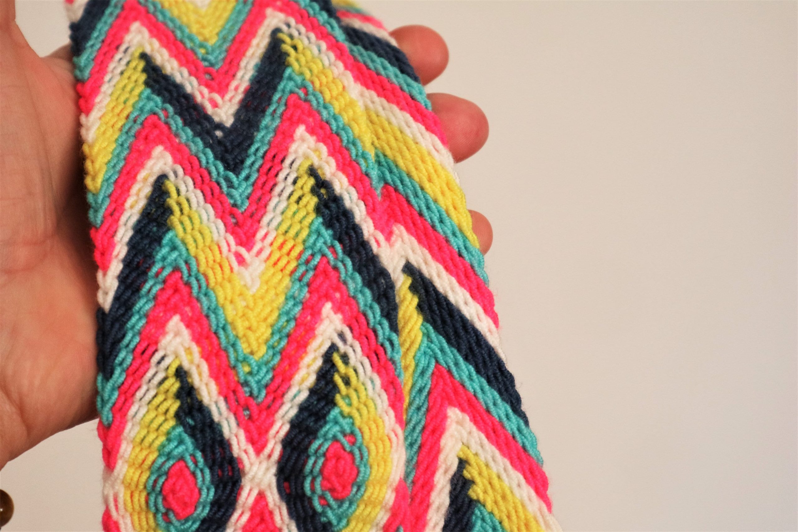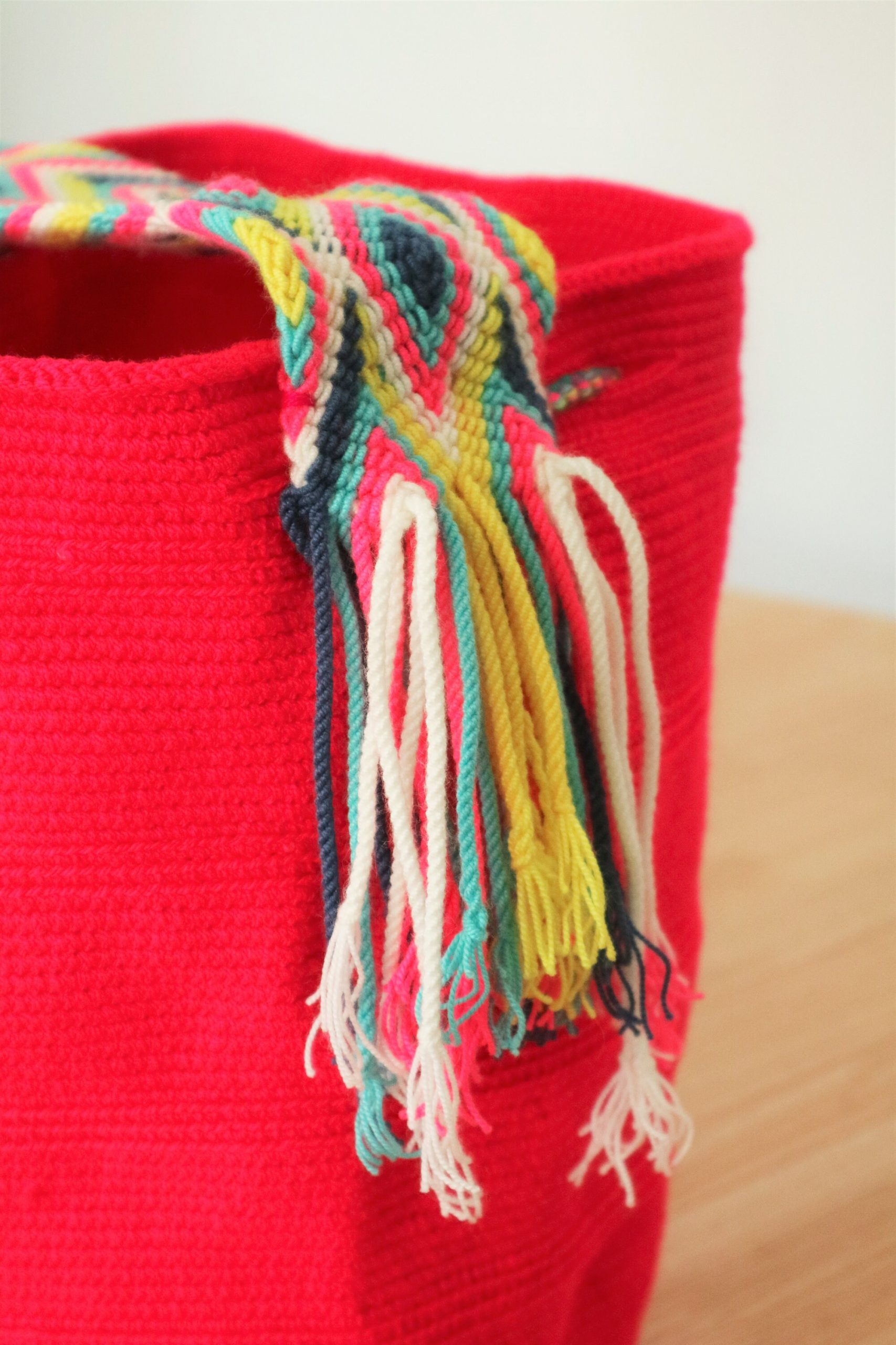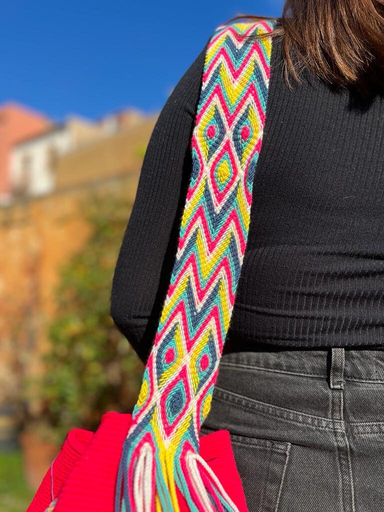 Bolsa colombiana wayuu hecha en la alta Guajira. Muy espaciosa, tiene aproximadamente 30cms de profundo, por 20cms de ancho y la cinta 1mt de largo por 9cms de ancho.